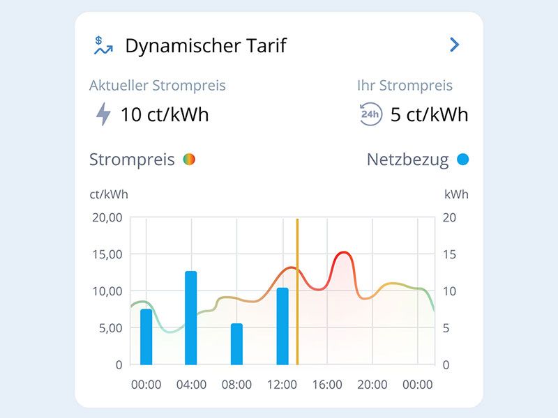 Alle Informationen zu Deinem Stromverbrauch, den aktuellen Preisen im dynamischen Tarif und unserer Optimierung sowie verschiedene Lademodi findest Du in unserer App.